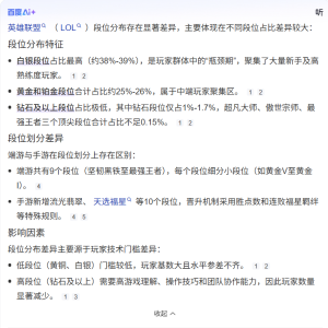 参考手机客户端《王者荣耀》与电脑端《League of Legends》(以下简称:“LOL”)来说,段位人数的分布有很大的差距。
